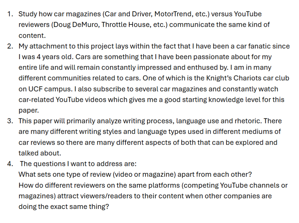 This page includes major assignments and supporting materials that document my research and writing throughout the semester. These artifacts help illustrate my writing process, my developing understanding of research genres, and the ways I met the ENC 1102 Course Outcomes.