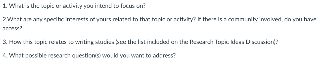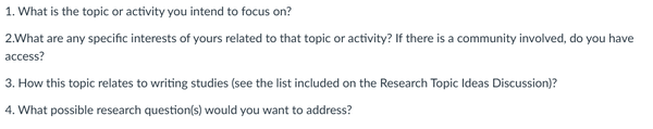 The artifacts below are my informal research proposal (with corresponding guiding questions) and my original research logs that I generated when I first started creating my project. They demonstrate Outcome 1: Generating Inquiry.